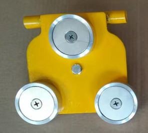 This yellow pilot ladder magnets are composed of three flat countersunk pot magnets and steel plate body. When the pilot ladder working, two units holding magnets will be put and fixed on the hull, for both sides of pilot ladder. As long as the magnets settled down, an extra sling belt with stainless steel biner will be used to fasten the ladder to magnetic assembly. In this way, it can prevent the ladder from shaking to protect the life safety. After using, it's easy to retrieve the magnets by lifting the handle.